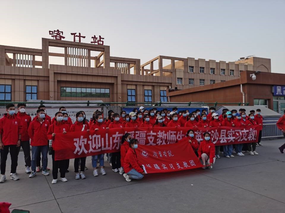 凡心所向,素履所往,生如逆旅,一以苇航。9月4日中午,经过50多个小时、4500多公里的行程,我校第三批援疆实习支教团70名师生顺利抵达新疆英吉沙。英吉沙地方和济宁市援疆指挥部领导到喀什火车站迎接并举行了简短的欢迎仪式。我校6个专业的66名学生将开启为期4个月的援疆实习支教生活。