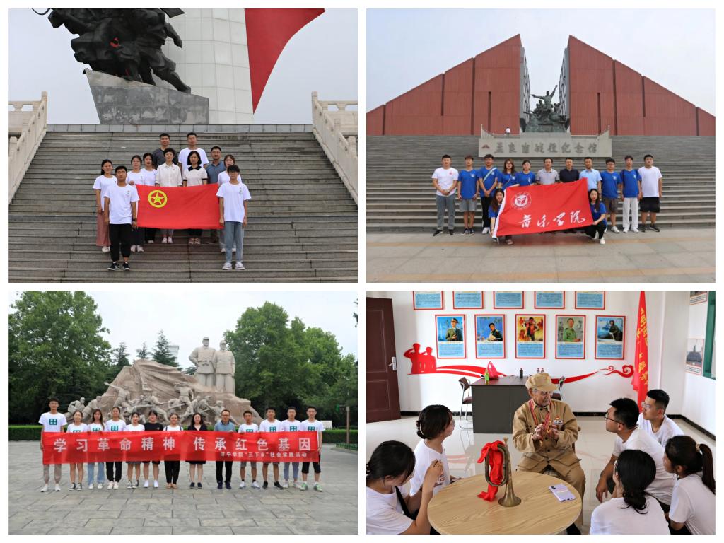 红色资源是我们党艰辛而辉煌奋斗历程的见证,是最宝贵的精神财富。暑假期间,校团委和二级学院广泛组织大学生寻访革命圣地,参观红色旧址和革命历史纪念馆,引导青年学生学党史、感党恩、跟党走,传承红色基因,赓续红色血脉。7月初,校团委、校学生会“寻访微山红色印迹,讲好齐鲁抗战故事”党史学习实践团来到微山抗日纪念馆和爱湖村,与微山团县委进行了校地交流,拜访抗战老兵,聆听老兵讲抗战故事;音乐学院“百年风华·青春筑梦”红色之旅实践队走进革命老区蒙阴县,开展“放歌沂蒙,唱响经典”、“探访慰问老党员,践行初心学党史”社会实践活动,参观“沂蒙六姐妹纪念馆”、“孟良崮战役纪念馆”,探访荣获“光荣在党50年”勋章老党员;教师教育学院“红色剪纸忆党史,初心宣讲颂党恩”社会实践团来到济宁任城区,在剪纸非遗传承人张跃广的指导下,用剪纸讲述党史故事;数学与计算机应用技术学院组织大学生参观鲁西南战役纪念馆、王杰纪念馆、台儿庄大战纪念馆,组织大学生党史宣讲队走进社区、镇村、中小学开展党史故事宣讲、分享学习感悟,带领群众学党史、强信念、跟党走。人文与传播学院、儒商学院、化学化工与材料学院、物理科学与智能工程学院、生命科学与生物工程学院、学前教育学院等组织大学生参观各地革命纪念馆、烈士陵园,缅怀革命先烈,接受爱国主义教育和革命传统教育。