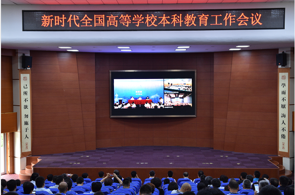 6月21日下午,教育部在四川大学召开新时代全国高等学校本科教育工作会议。教育部党组书记、部长陈宝生出席会议并讲话。按照省委教育工委、省教育厅要求,我校在理科楼报告厅设立分会场。我校领导班子成员、各部门主要负责人、教务处全体人员、各系(院、部)全体管理人员、各专业负责人和部分教师代表收看会议。