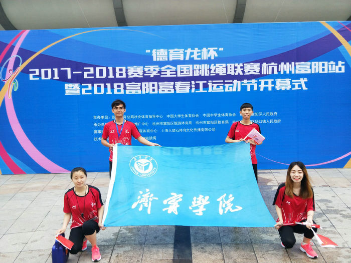 2017-2018年全国跳绳联赛杭州富阳分站赛由国家体育总局社会体育指导中心、中国大学生体育协会、中国中学生体育协会、杭州市富阳区人民政府主办,全国跳绳运动推广中心等单位承办。比赛共有来自浙江、广东、江苏、上海、山东、香港、贵州、北京等全国13个省(市、自治区),50余支参赛队伍,862名运动员参赛。我校跳绳校队的4名选手李龙飞、刘程龙、于晓婉和李先莹,作为新队员首次参加全国比赛,与来自厦门大学、上海第二工业大学、山东师范大学、东华大学、上海财经大学、成都大学、香港花式跳绳协会等高校和专业团队的运动员同场竞技,比赛中他们克服心理和外界因素的影响,展示出良好的竞技状态和精神风貌,取得了优异的成绩。
