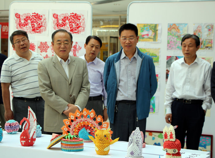 5月10日至16日,学前教育学院学生美术作品展在亚星在线登录官网图书馆二楼大厅举办。展览期间,校党委书记郁章玉,党委副书记马恩,党委委员、副院长朱松涛等学校领导及到访的菏泽学院党委委员、副院长孟令美观看学前教育学院学生美术作品展。