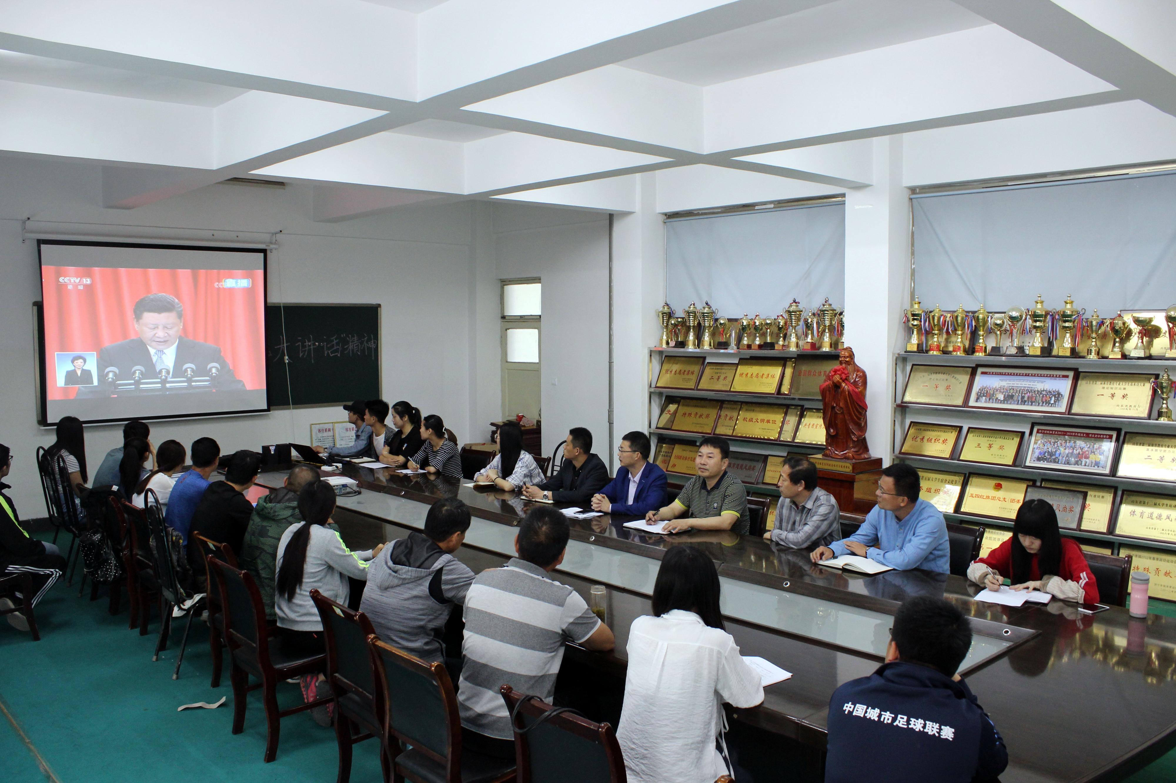 教育系认真组织党员、师生员工在二号楼C406集中收听收看大会现场直播,并通过召开座谈会、讨论会,畅谈学习习近平总书记重要讲话的感受。大家认为,作为党员和师生,我们要始终坚定理想信念,坚定中国特色社会主义道路自信、理论自信、制度自信、文化自信;始终坚守为民的情怀,牢记全心全意为人民服务的宗旨,牢记使命,甘于奉献;始终坚持理论与实践相结合,以习近平新时代中国特色社会主义思想为指导,不断从马克思主义中国化的最新理论成果中汲取科学智慧和理论力量,以更加昂扬的斗志、更加有为的举措,为学校的发展,为实现“两个一百年”奋斗目标、实现中华民族伟大复兴的中国梦不懈奋斗。