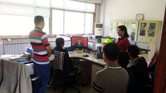 数学系党总支组织教师党员、学生党员和部分入党积极分子40余人在系会议室观看了大会直播节目。直播结束后,系党总支书记于锋作了发言,他强调党员要切实把习近平总书记重要讲话精神贯穿到教学和学习工作中去,充分发挥党员的先锋模范作用,为国家和学校的建设贡献力量。