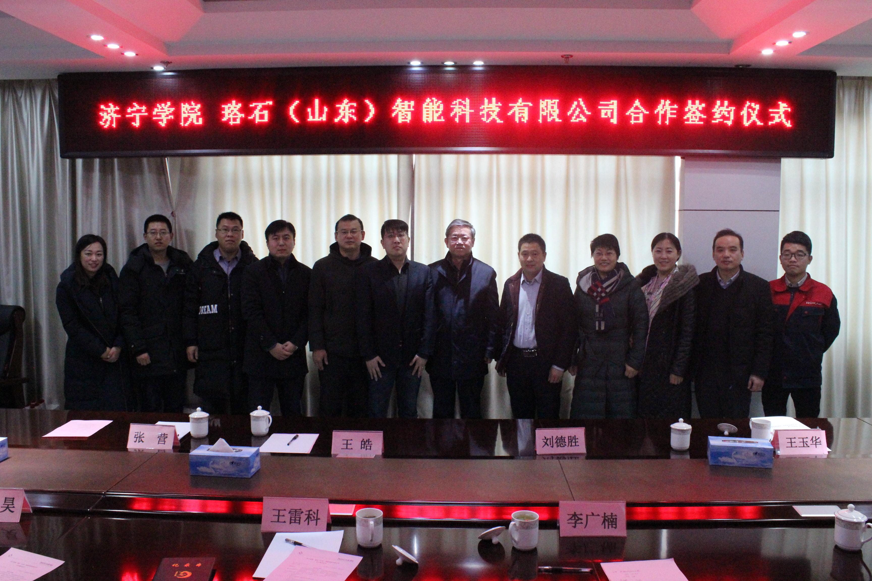 1月25日,我校与珞石(山东)智能科技有限公司合作签约仪式在邹城举行。校党委委员、副院长刘德胜,邹城投资促进局局长李广楠,珞石(山东)智能科技有限公司总经理王皓、副总经理王双等负责人,邹城市科技局、中心店镇领导,我校教务处、科研处、物理与信息工程系相关负责人出席了签约仪式。