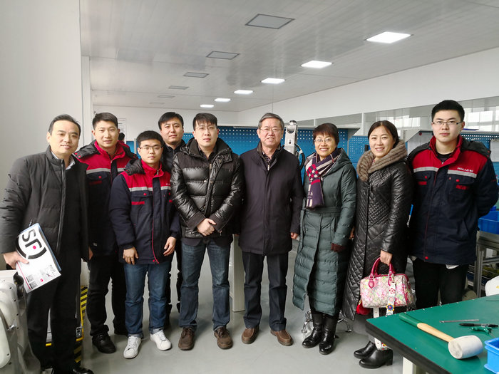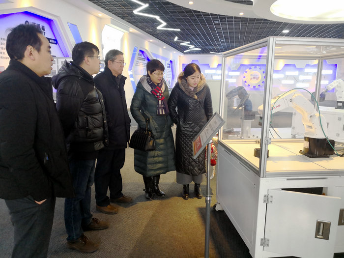 仪式开始前,刘德胜一行参观了珞石(山东)智能科技有限公司,并看望了我校机械设计制造及其自动化专业在公司实习的同学们。