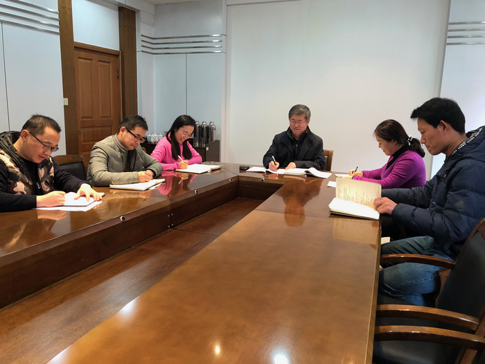 12月29日下午,科研处党支部在行政楼二楼会议室召开全体党员会议,开展“弘扬‘红船精神’走在时代前列”主题党日活动。全体党员集体学习了习近平总书记在任中共浙江省委书记时的署名文章《弘扬“红船精神”,走在时代前列》,并围绕主题,结合工作实际开展研讨交流。