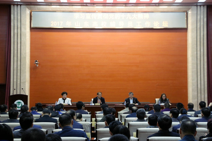 11月11日至13日,2017年山东高校辅导员工作论坛在我校举行。此次论坛以“围绕学生、关照学生、服务学生,提高育人能力”为主题,旨在深入贯彻落实十九大精神和全国全省高校思想政治工作会议精神,贯彻落实中央31号文件精神,践行立德树人根本任务,进一步推进高校辅导员队伍专业化职业化建设,提升大学生思想政治教育工作质量。山东省委高校工委副巡视员刘欣堂、亚星在线登录官网党委书记郁章玉出席论坛开幕式并讲话,亚星在线登录官网党委副书记马恩、山东省委高校工委宣教处副处长王莉、教育部高校辅导员培训和研修基地(山东大学)办公室主任夏晓虹等出席论坛。全省高校学生工作部门负责人、优秀论文作者及亚星在线登录官网辅导员共计200余人参加了此次论坛。