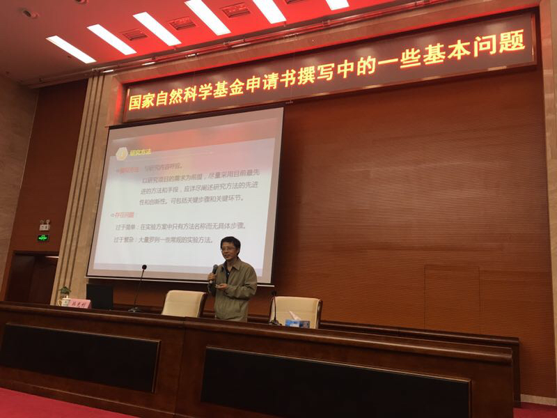 韩克利结合自身作为项目负责人和评审专家的经历,从立项依据、研究内容、目标及关键问题、拟采用的研究方法、技术路线、创新之处及可行性分析、年度研究计划及预期研究结果、研究基础和相关条件等方面详细讲解了国家自然科学基金申请中应遵循的原则和需要注意的问题。从评审和评议的角度为我们分析了成功与失败的主要原因,并与老师们就有关问题进行了互动交流。