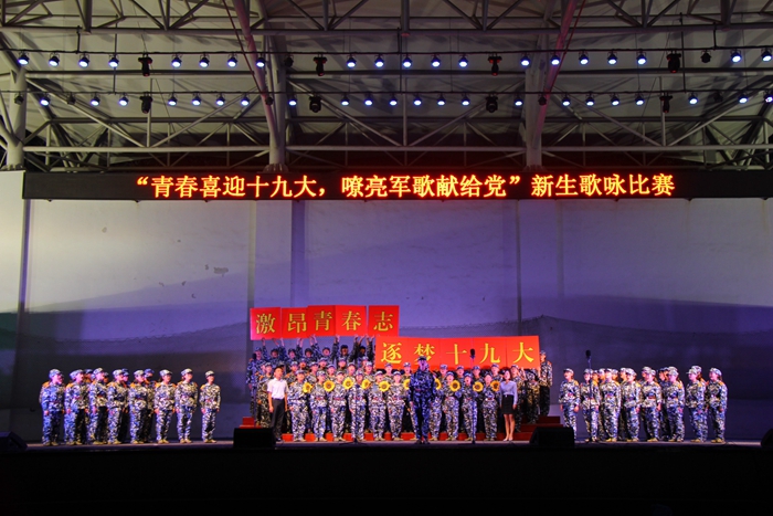 红旗飘扬,歌声荡漾。夜晚的运动场成为军歌的海洋。同学们身着迷彩军装,精神抖擞,斗志昂扬。13支参赛连队以整齐的队列、饱满的热情、良好的精神风貌先后登台演唱《强军战歌》《黄河大合唱》《不松铁拳头》《祖国不会忘记》《中国军魂》《在灿烂的阳光下》等一首首耳熟能详、脍炙人口的经典歌曲,表达了广大青年学生对党、对人民军队的热爱和对大学新生活的无限向往。