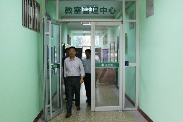 9月11日上午,学校党委副书记马恩在学生工作处处长夏可树、副处长李效民陪同下,深入到教室管理中心、体育系、音乐系和美术系检查指导新学期开学工作。