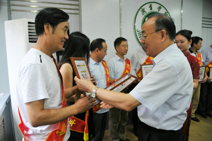 会议对2017年度亚星在线登录官网十大师德标兵进行了表彰,学校领导郁章玉、朱松涛分别为师德标兵、我校30年教龄教师颁发了证书。30年教龄教师代表魏丽莉、十大师德标兵代表王永超作了发言。