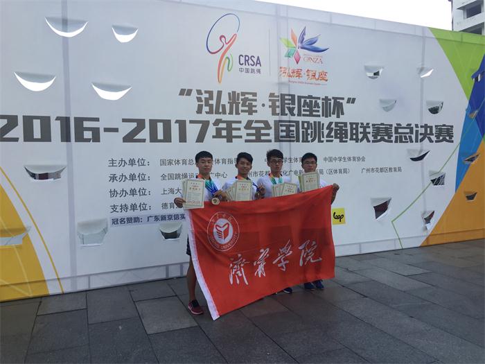 7月8日至13日,由国家体育总局社会体育指导中心主办的2016-2017年全国跳绳联赛总决赛在广州花都区体育馆隆重举行。我校花样跳绳队选派4名同学参加比赛。