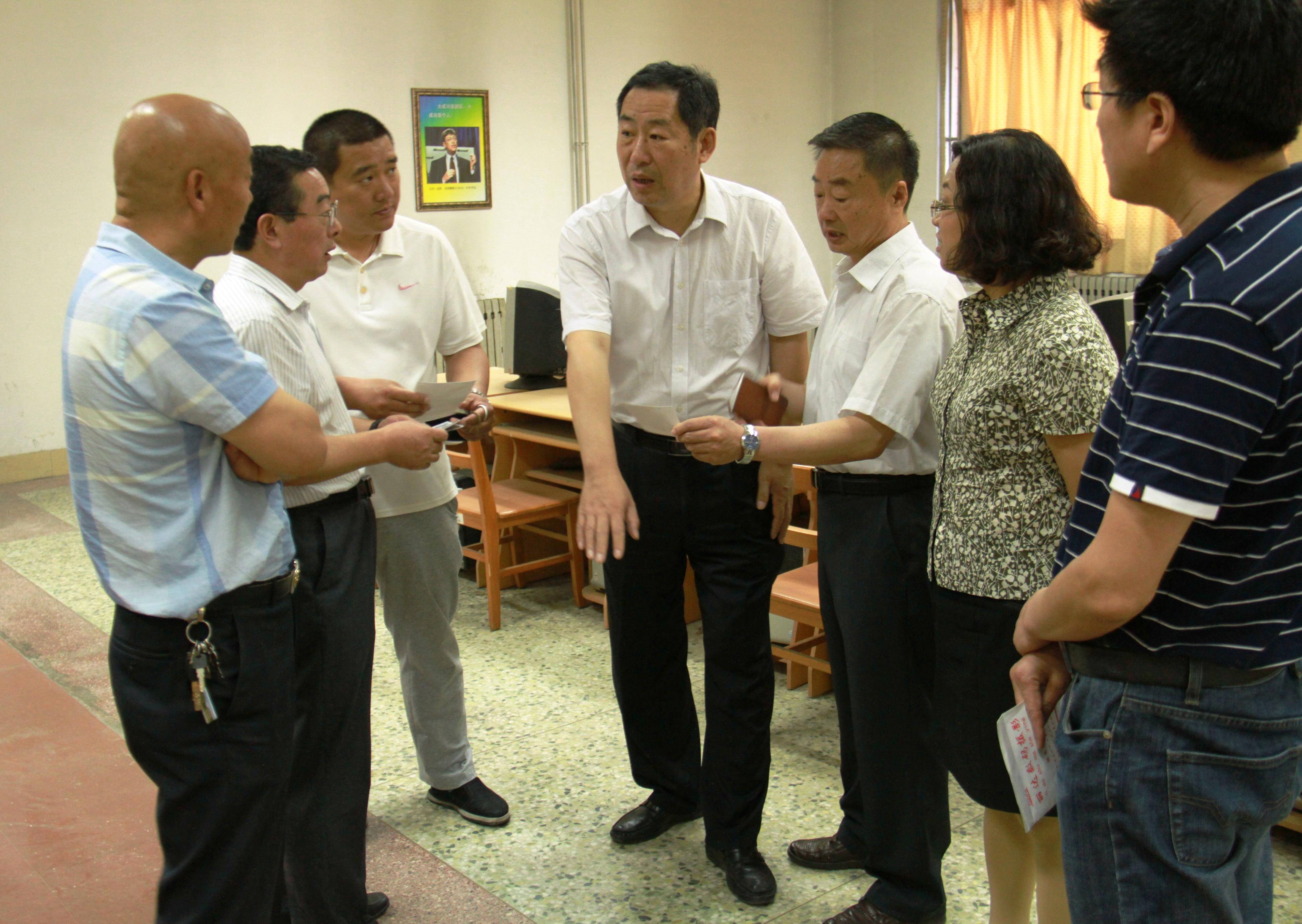 李继凯先后在图书馆借阅室、采编室、电子阅览室、消防总控室、招生与就业指导处进行了实际调研,现场了解情况,询问安保措施,然后逐楼层察看了消防设施以及位于图书馆六楼的消防储水箱。调研结束后在图书馆三楼会议室就消防安全工作进行了专题座谈。