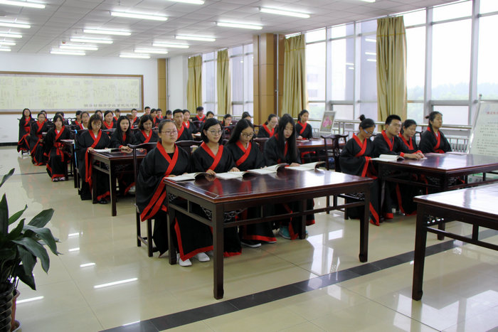 我校孔子学堂是全省29个率先批准建立的高校孔子学堂之一。成立孔子学堂·大学生国学经典诵读班,旨在通过集体诵读、专家辅导、实践教学、交流分享等形式带领学员学习优秀传统文化,以点带面,进一步营造我校传统文化育人环境。