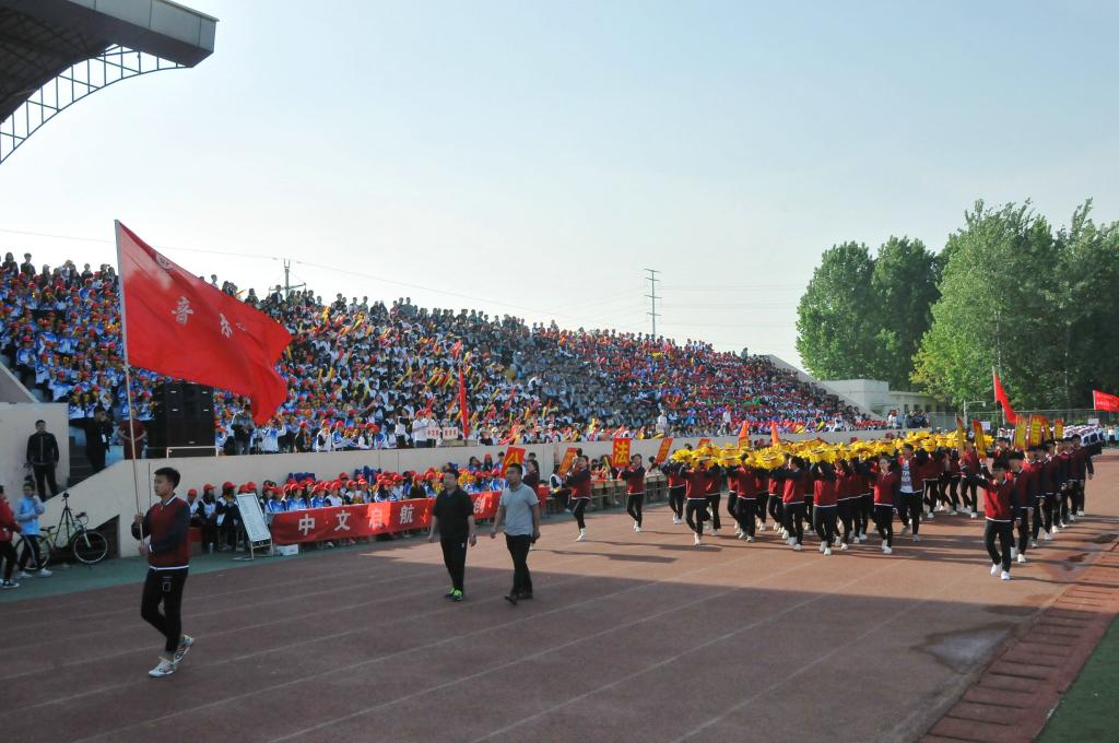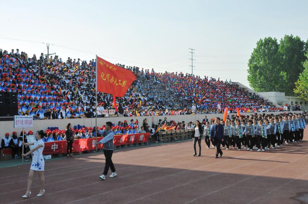 伴着《运动员进行曲》铿锵有力的节奏,在国旗护卫队的引领下,校旗队、会徽会旗队、彩旗方队、志愿者方队、裁判员方队以及13个系代表队迈着整齐坚定、昂扬奋进的步伐,喊着嘹亮的口号依次走过主席台,展示了我校师生昂扬向上的精神面貌。中文系方队缓缓举起的党徽,代表着在时代的感召下中文学子将用青春和活力谱写新的篇章;经济与管理系方队在“索经济之道,修管理之德”系风的引导下,展现了青春的激情和坚韧顽强的精神;文化传播系方队手持系徽拼凑成的数字66,表达了他们对我校建校66周年的美好祝福;外国语系方队高高举起的fighting字母气球,诠释了外国语系永不言弃的精神;教育系方队设计的“师”字造型展示了教育系“学为人师,行为世范”的仁爱情怀;美术系方队秉承艺术气息,彰显了海洋般容纳百川的胸襟;音乐系方队如跳动的音符将“求实”展现给观众;数学系方队展现的是顽强拼搏的队伍、团结向上的集体;物理与信息工程系(机械工程系)方队表达了如雄鹰博击长空、似蛟龙畅游四海的气概;化学与化工系方队展示了在运动场上如化学世界般丰富多彩的壮美华章;生命科学与工程系方队展示了生命的力量、青春的飞扬;计算机科学系方队表达了IT英才展我风采、创新科技、引领未来的豪迈;体育系方队在“更快、更高、更强”的目标下凸显了真正的体育本色。