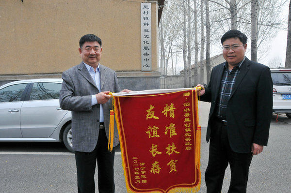 4月7日,学校党委书记郁章玉、副书记马恩前往我校帮包的泗水县星村镇南百顶北村、南百顶东村和赵家岭村,迎接圆满完成抓党建、促脱贫任务的我校第二轮“第一书记”郭怀伟、秦胜营、孔全新,向帮包村和星村镇赠送锦旗,并与泗水县委副书记初建伟和镇党委书记麻修华等当地干部座谈。