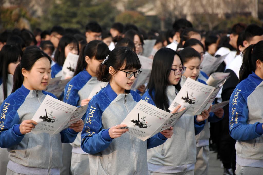 根据中共中央办公厅、国务院办公厅《关于实施中华优秀传统文化传承发展工程的意见》,为弘扬中国传统优秀文化,传承非物质文化遗产,庆祝非物质文化遗产“二十四节气”申遗成功,值我国传统节气春分时节,我校于3月16日下午16时在杏坛广场组织了“非遗进校园”千人读诗活动。党委副书记马恩出席,党委宣传部部长邓新民、团委书记马新蕾、中文系党总支书记王艳萍、经济与管理系党总支书记陆波、教育系党总支书记乔东华,以及1000余名学生参加了此次活动。