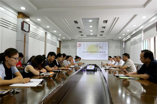 9月13日下午,学校在行政楼二楼会议室举行中秋节学生座谈会。院长吕灵昌,副院长朱松涛出席会议并讲话。党委宣传部、学生工作处、后勤处负责同志以及辅导员代表、少数民族学生代表、经济困难学生代表参加了座谈。学生工作处处长、团委书记李凡路主持座谈会。