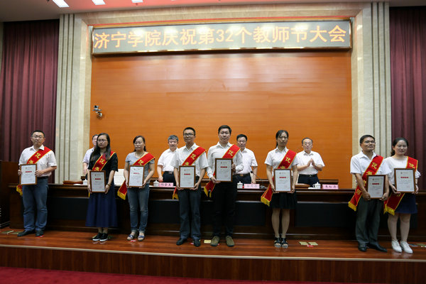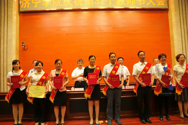 郁章玉在讲话中代表学校党委向受到表彰的老师们表示衷心的祝贺,向辛勤工作、默默奉献的全校教职工致以诚挚的节日问候和美好的祝愿。他指出,今年,我校庆祝第32个教师节的主题是“甘守三尺讲台,争做‘四有’老师”。教育是提高人民综合素质、促进人的全面发展的重要途径,是民族振兴、社会进步的重要基石,是对中华民族伟大复兴具有决定性意义的事业。教师是人类历史上最古老的职业之一,是太阳底下最崇高的职业。我校始终认真贯彻党的教育方针,传播文明,探求新知,培育英才,为地方经济社会发展尤其是教育事业的发展作出了重大贡献。几代学院人忠诚党的教育事业,履行教师神圣职责,诲人不倦,敦品励学,务本求真,尊生乐业,以其执着和坚韧,才华和智慧,谱写了一曲曲青春之歌、奋斗之歌,赢得了社会广泛赞誉和尊重。