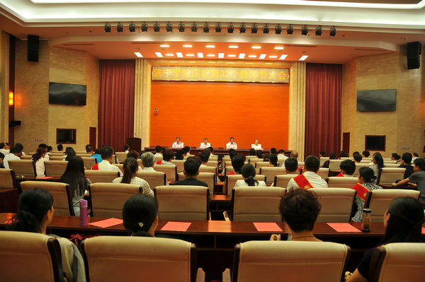 9月9日下午,学校在科技文化大楼学术报告厅隆重举行庆祝第32个教师节大会。校党委书记郁章玉出席会议并讲话,党委副书记、院长吕灵昌主持会议,党委委员、副院长刘德胜、朱松涛出席会议。