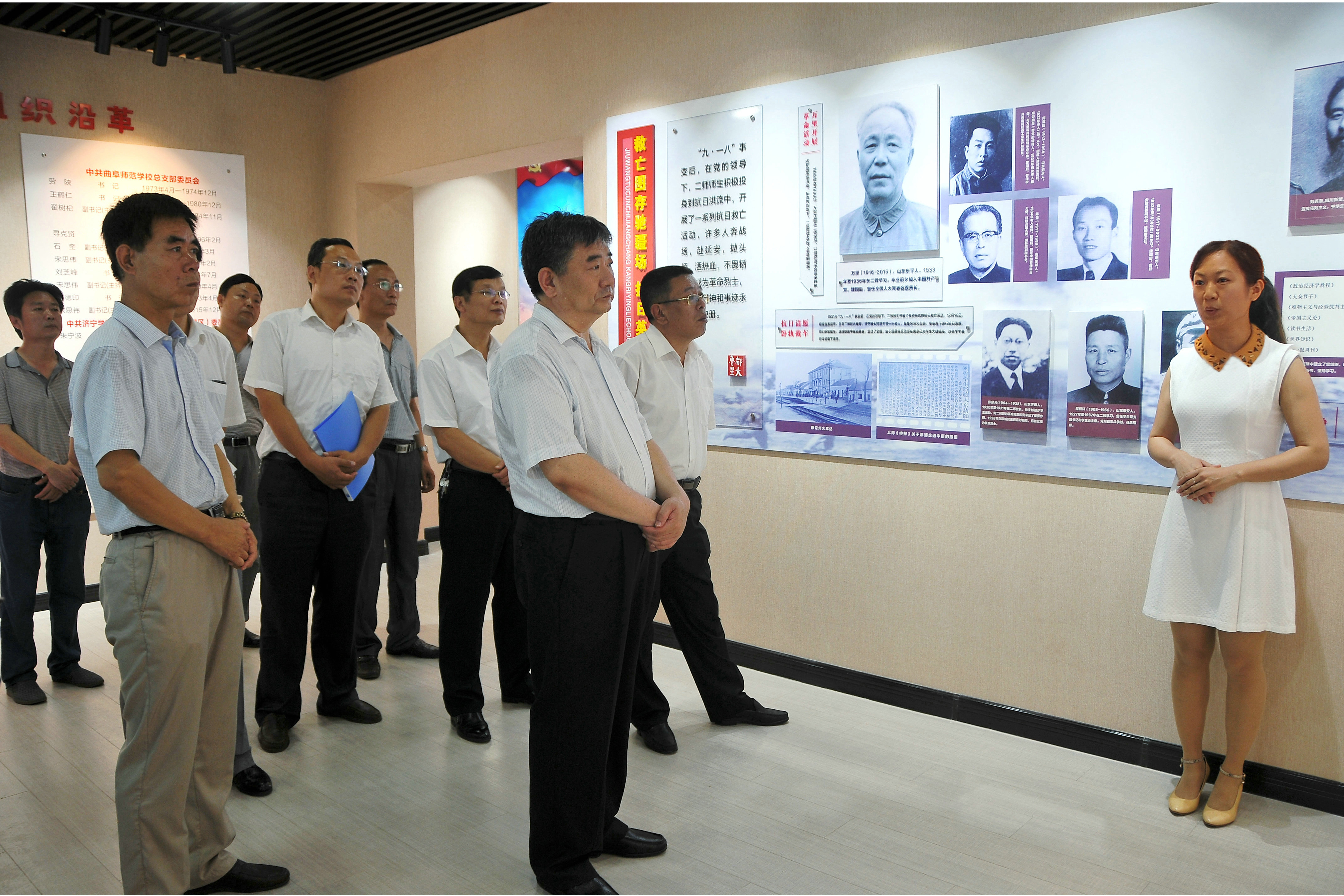 随后,大家又到初等教育学院(曲阜师范校区)“中共山东省立二师支部纪念馆”进行现场学习教育,共同参观了“中共山东省立二师支部成立90周年纪念展”。展览以“鲁都星火”为主题,共分五个部分,简明扼要地再现了“二师支部”走过的90年不凡历程及其书写的济宁地区党史上不可忘却的光辉篇章。大家还兴致勃勃地参观了杰出校友万里当年的学习室及初等教育学院党员活动室,对我校光辉灿烂的红色文化、底蕴深厚的优秀传统文化有了新的认识和提高。