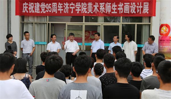 为庆祝中国共产党成立95周年,6月30日,由学校纪委、组织部、宣传部、美术系共同举办的“翰墨舒怀丹青颂党”庆祝建党95周年美术系师生书画设计展在美术系展厅盛大开幕。校党委书记郁章玉,党委委员、纪委书记许记中出席开幕式,党委组织部、党委宣传部、审计处有关负责同志及美术系系主任褚滨、党总支书记杨晓青、原系党总支书记李作义、部分师生参加了开幕式。开幕式由杨晓青主持。