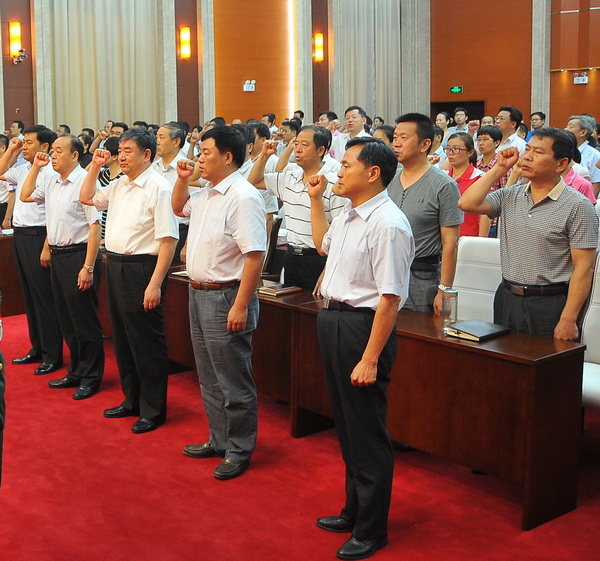 学校各党总支(党委)、党支部书记,受表彰的党员、党务工作者,党群工作部门科级以上党员干部参加大会并于会议结束时重温了入党誓词。(党委宣传部)