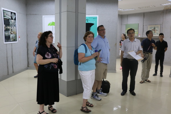6月30日下午,美国佛蒙特州教师中国历史文化考察团一行5人来我校访问。文化传播系教授周新芳博士、中文系副教授王永超博士以及国际交流合作处有关人员与客人进行了座谈。座谈中,我校两位专家就对方关心的中国传统文化问题进行了细致、友好的讲解,并获得对方的高度认同。随后考察团参观了校园并到美术系观看了中国共产党成立95周年画展,在图书馆参观了儒家文化艺术长廊。在参观过程中,考察团成员和我校教师、同学进行了热情洋溢的交流,对我校深厚的文化底蕴表现出极大的兴趣。此次访问团的到来加深了双方的了解,并一致表示将为下一步的交流合作做出努力。(国际交流合作处)