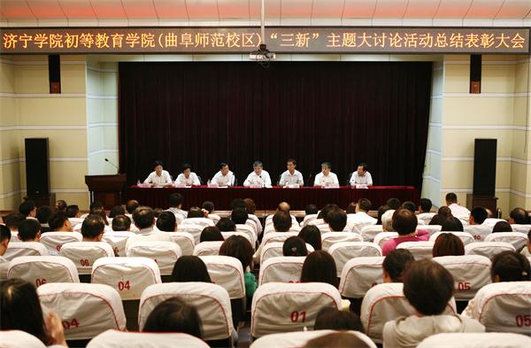 6月3日下午,亚星在线登录官网初等教育学院(曲阜师范校区)召开“树立新理念、迎接新挑战、共谋新发展”主题大讨论总结表彰大会。亚星在线登录官网党委书记郁章玉出席大会并讲话。初等教育学院(曲阜师范校区)党委书记朱宁波对“三新”大讨论进行了总结,会上对在主题大讨论中表现突出的先进集体和优秀论文获得者进行了表彰。校区全体教职工参加了大会,初等教育学院党委副书记、院长宋思伟主持大会。