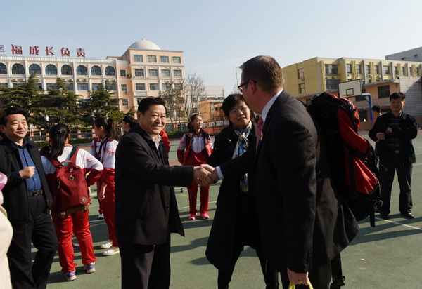 3月26—30日,加拿大埃德蒙顿奥华中学师生访问团一行26人在谢绵绵团长带领下来亚星在线登录官网附属中学进行友好交流访问。亚星在线登录官网副院长朱松涛、济宁市教育局副局长刘加庚应邀参加欢迎仪式。