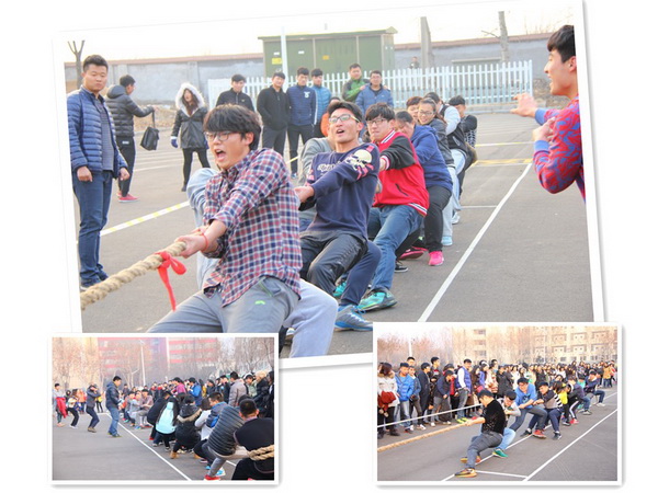 为响应团中央号召,提倡大学生走下网络、走出宿舍、走向操场,推动学校群众性体育活动蓬勃发展,由校团委主办、体育系团总支承办的学校2015年大学生拔河比赛于12月28日至29日在校西体育场健身广场举行。