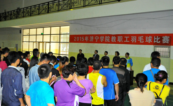 为丰富我校教职工的业余生活,增强教职工的体质,展现我校教职工蓬勃向上的精神风貌。2015年10月19日羽毛球比赛开幕式暨羽毛球协会成立在体育系体育馆举行。副院长刘德胜出席开幕式并给羽毛球协会授旗。他要求,各位参赛队员要尊重裁判,尊重对手,赛出风格,赛出水平,强身健体,幸福一生。