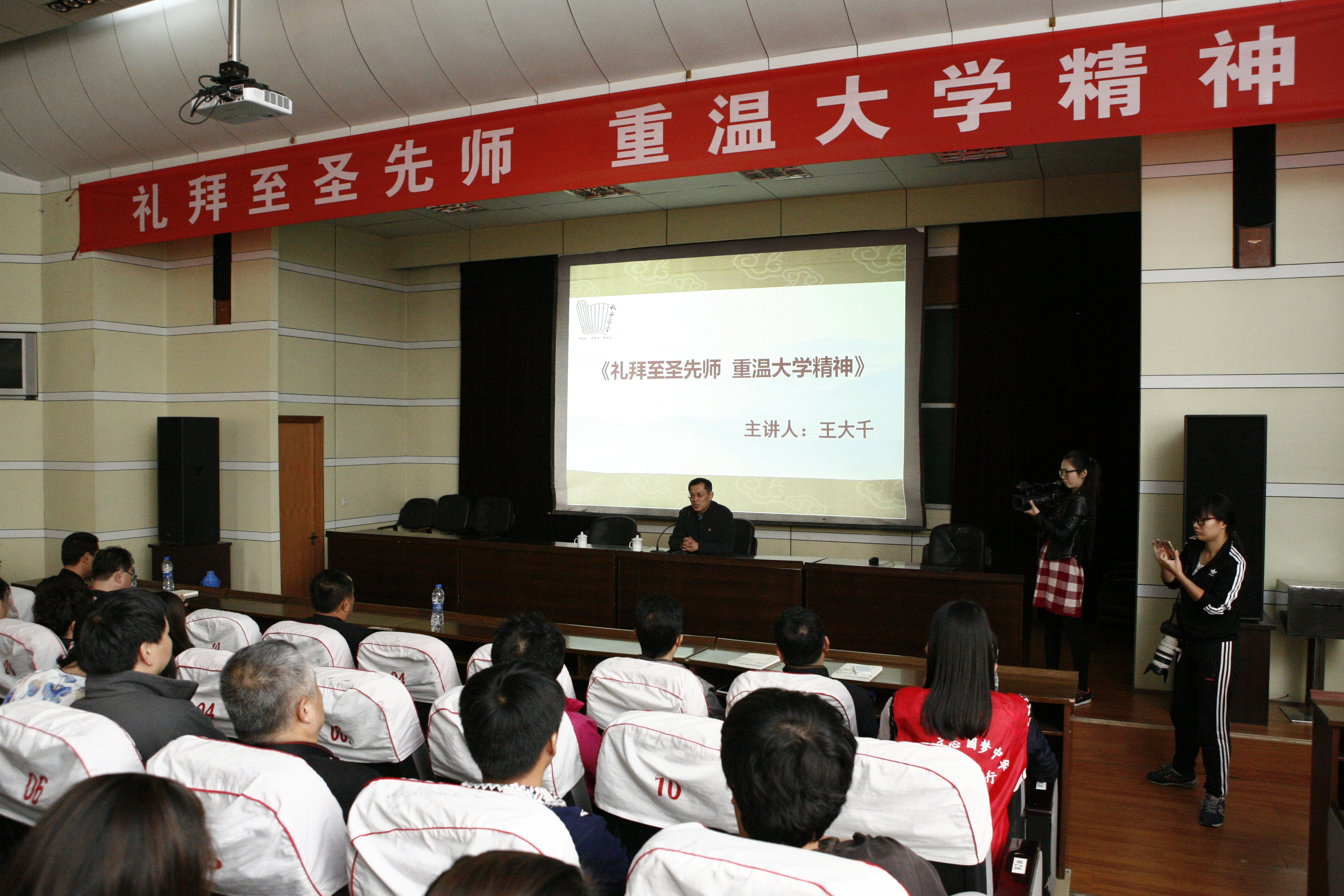 10月19日上午,中国孔子基金会理事长、秘书长王大千在初等教育学院(曲阜师范校区)给部分师生作了题为“礼拜至圣先师 重温大学精神”的报告,200余人聆听了报告。