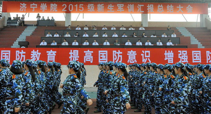 各系、各部门的负责同志,部队承训官兵以及2015级全体军训同学参加了大会。(学生工作部)
