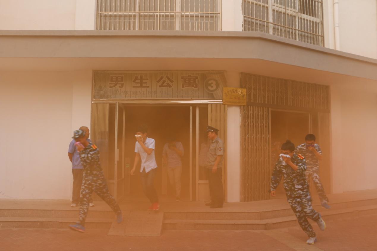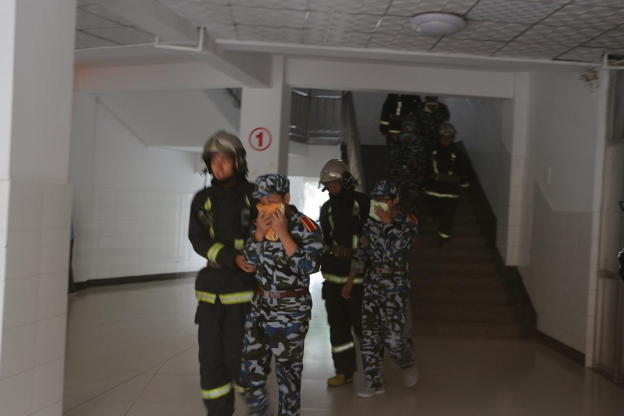 9月19日下午,随着一阵刺耳的“火警”警报响起,2015级新生模拟火灾疏散演练活动正式开始。女生公寓9号楼冒出滚滚“浓烟”,同学们纷纷用湿布捂住口鼻、身体保持低姿、沿着安全疏散出口快速有序的撤离,不到2分钟,楼内八百余名新生全部安全撤出公寓。疏散演习还在男生公寓3号楼举行。此次疏散演习活动取得圆满成功。