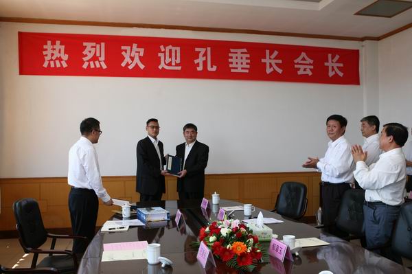 交流会上,郁章玉书记代表学院向孔垂长先生赠送了我校制作的集著作和光盘为一体的《演说论语》纪念品,孔垂长先生向学校回赠《七十二贤肖像》画册,并递交了致师生的一封信(将在16日举办的祭孔典礼上宣读)。初等教育学院院长宋思伟主持交流会并介绍了曲阜师范校区开展儒学教育和交流情况,中文系主任、儒学与地域文化研究传播中心主任王钦鸿教授就学院开展儒学研究情况作了发言。