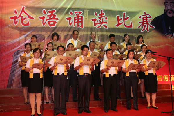 为纪念孔子诞辰2566周年,热烈庆祝第31个教师节,9月10日,初等教育学院(曲阜师范校区)举办了首届教职工“论语经典诵读比赛”。130名教职工分成6个参赛队依次登场,队形严整、精神饱满、充满敬意地诵读精选的30条《论语》名句,可谓字字珠玑、发人深思,博得学生和观众阵阵掌声。