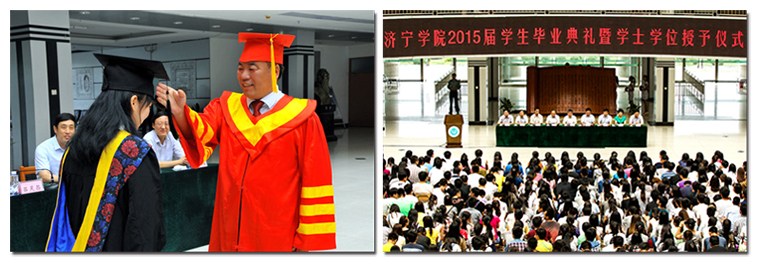 仪式上,学校为毕业生颁发了毕业证书;向2015年西部计划志愿者颁发了荣誉证书和奖金;向荣获2015年度“山东省优秀毕业生”称号的学生代表颁发了荣誉证书;教师代表苏芳、毕业生代表袁雪平同学、在校生代表姜维轩同学分别发言,表达了老师对学生的殷切期望、莘莘学子对母校和老师的眷恋和感激之情。