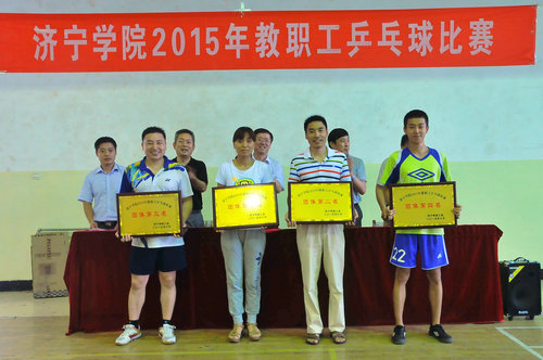 赛事设团体赛和单打比赛两个项目,共有24个代表队的98名教职工参加了比赛。在团体赛中,音乐系代表队荣获冠军,初等教育学院代表队获得亚军,党委(院长)办公室代表队、学前教育代表队、数学系代表队、生命科学与工程系代表队、计算机科学系代表队、教育系代表队分获第三至八名;在女子单打比赛中,音乐系郝晓红获得冠军,生命科学与工程系王艳萍获得亚军,初等教育学院杜薇、后勤处宫庆爱分获三、四名;在男子单打比赛中,教育系孙一杰获得冠军,音乐系葛修路获得亚军,资产处韩更生、党委(院长)办公室高山分获三、四名;党委宣传部代表队、中文系代表队、化学与化工系代表队、社会科学部代表队、继续教育学院代表队、学报编辑部代表队获得优秀组织奖。(工会 体育系)