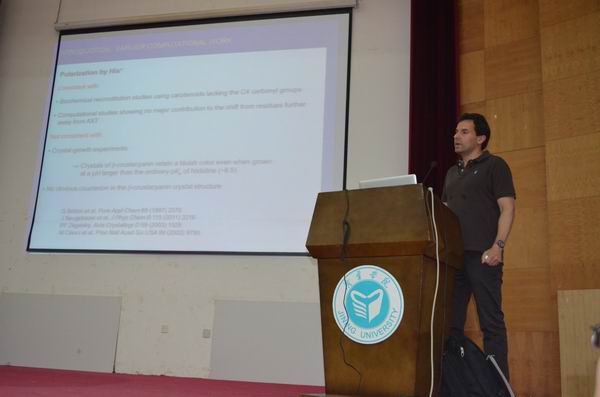 6月15日下午,瑞典林雪平大学Bo Durbeej教授应邀来我校访问,并在理科楼报告厅为我校师生作了题为“On the Origin and Variation of Colors in Lobster Carapace”的学术报告。他首先介绍了光化学反应的一般机理,继而通过对以往机制解释的深入分析,利用密度泛函理论结合虾红素发色团酸碱机制变化模型,对人们日常生活中一种常见的光化学反应——龙虾外壳的颜色变化的红移现象进行了更精确的解释。通过听取报告,师生对生活中常见物理现象的研究方法及过程有了较深刻的理解。报告结束后,Bo Durbeej教授与我校相关研究领域的老师们进行了深入的讨论交流,并对老师们提出的问题进行了详细解释。