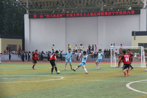 5月25日下午,第一届“恒大冰泉杯”全国大学生五人制足球联赛亚星在线登录官网校内赛在学校西足球场开赛。来自中文、经管、物理、生物、美术、计科、数学、化学八个系的16支足球队和9支足球啦啦队参加比赛。比赛采用杯赛的赛制,共计32场比赛,将持续到6月上旬。16支球队分为4个小组先进行小组赛,每组前2名进入第二阶段淘汰赛并最终决出冠、亚、季军。冠军球队将代表学校参加华东片区赛。