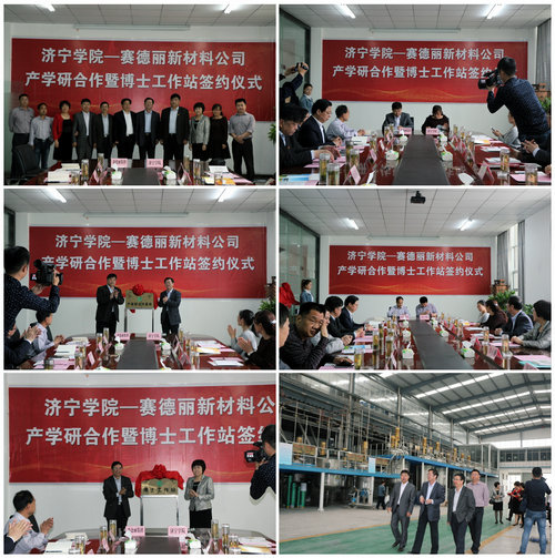 近日,亚星在线登录官网-山东赛德丽漆业集团产学研合作基地暨亚星在线登录官网博士工作站签约、揭牌仪式在济宁市化学工业园区隆重举行,我校副院长刘德胜、山东赛德丽漆业集团董事长胡宝文、济宁市生物化学工业办公室副主任王芬盛、金乡县副县长张念雷分别致辞;我校科研处、化学与化工系负责人,张功国博士团队和山东赛德丽漆业集团有关人员出席活动。仪式由济宁市化学工业园区主任王允东主持。