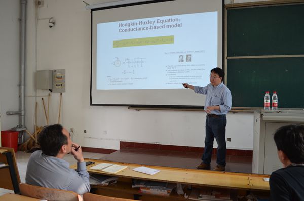 4月24日,北京师范大学博士生导师吴思教授应邀来我校作了题为“脑科学中的物理”的学术报告。吴思教授在介绍了大脑信息处理的基础知识后,以单神经元模型和神经网络模型等最新研究成果为例,详细阐述了物理学在脑科学中的应用,并展望了脑科学未来的发展方向和应用前景。吴思教授精彩的报告使与会师生对生物物理这一交叉学科的研究内容、研究方法及潜在应用等方面有了深刻的理解。