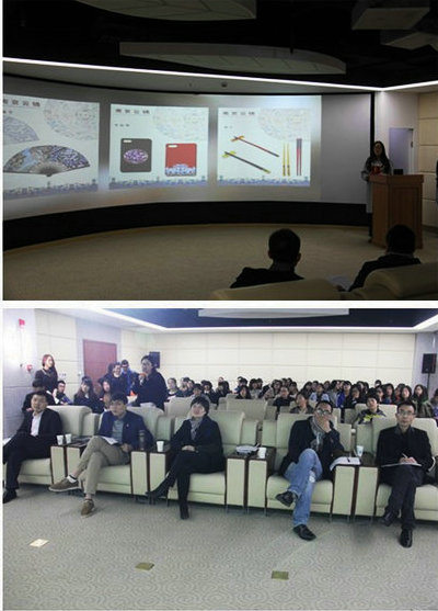 由2014级专升本视觉传达专业学生分组组成十个设计团队,前期分赴南京、苏州、西安、青岛、曲阜等地考察实践,分别以“江南春色”、“西北风情”、“岛城风光”、“圣城体悟”等主题,通过PPT、VCR、产品实物展示等形式展示实践成果。