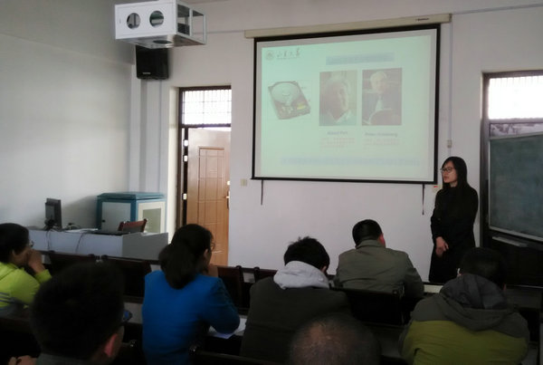 3月27日,作为我校本学期首个博士论坛活动,山东大学物理学院邹冬青博士应邀来我校作了题为“低并苯分子与石墨烯形成纳米结的自旋输运”的学术报告。邹冬青从当前国际物理学的研究热点之一——分子自旋电子学谈起,简要阐述了分子自旋电子学的研究内容、研究意义和研究现状,详细介绍了基于二维晶体石墨烯的该领域研究进展以及所在课题组在低并苯有机分子与石墨烯形成纳米器件的自旋输运上取得的最新研究成果。