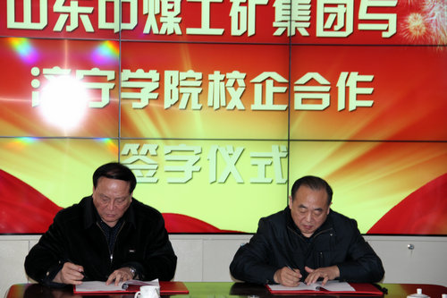 12月11日上午,我校与山东中煤工矿集团校企合作协议签订仪式在中煤集团二楼会议室举行,中煤集团董事长渠青、亚星在线登录官网副院长朱松涛出席仪式,中煤集团常务副总经理韩勇、副总经理李振波、樊培功,学校发展规划处、教务处、团委、经济与管理系、外国语系、物理与信息工程系、计算机科学系负责同志参加仪式。在仪式上,渠青、朱松涛共同签订了校企合作协议、实践教学基地协议,韩勇、学校团委书记李凡路共同签订了亚星在线登录官网大学生社会实践基地协议,并举行了授牌仪式。
