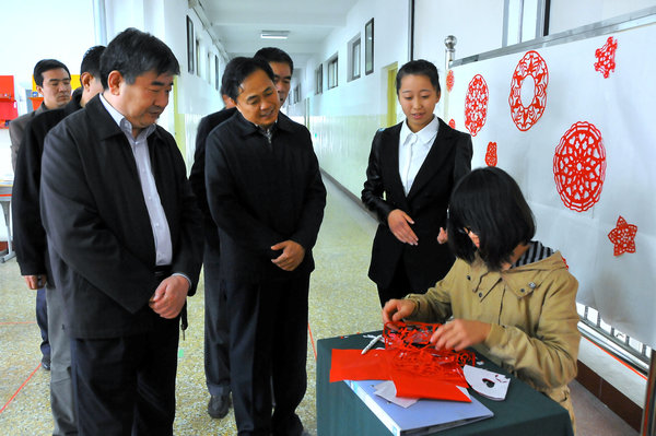“礼敬中华——千古笔墨情”为主题的优秀书画展览面向全校同学进行了2个月的书画作品征集,从征集的120幅作品中精心挑选出72幅优秀书画剪纸作品进行装裱展览。 “收藏,品读千载文化精华”为主题的收藏展览从前期宣传准备到最终展览,历时月余。从全校范围中征集的展品种类丰富,有精美邮票、古玩字画、明信片,手工作品,剪纸等八个主题展览板块。郁章玉仔细地参观了整个作品展览,不时的驻足品观,并同在场参观的师生进行了现场交流。