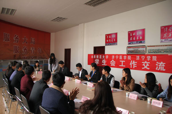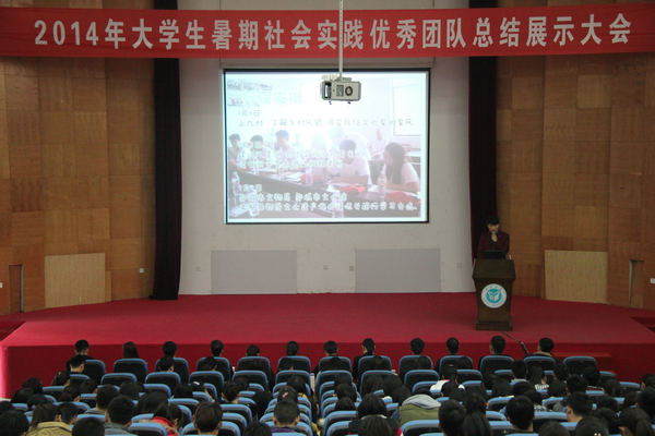 11月11日下午,根据团省委统一部署, 2014年大学生暑期社会实践省级优秀团队总结展示大会在我校理科楼报告厅举行,曲阜师范大学和济宁医学院的部分省级优秀团队代表应邀参加了此次活动,三所高校学生会主席团成员和我校近400名同学参加了活动。