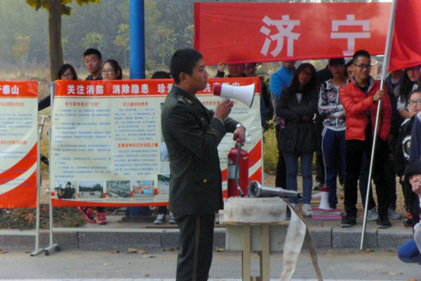 11月6日下午,学校与曲阜市公安消防大队联合开展模拟火场消防实战演习活动。学校领导、党委(院长)办公室、学生工作部、团委 、图书馆、安全保卫处、各系辅导员、各系义务消防队员、大学生消防志愿者大队、学生自律委员会等330人参加了演习活动。