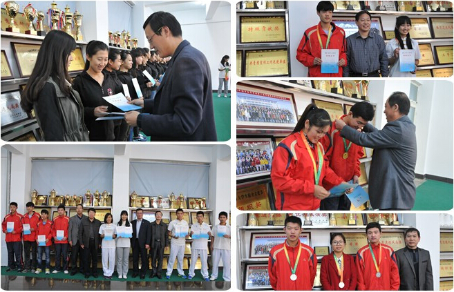 11月3日下午,学校在体育系举行参加山东省第二十三届运动会总结表彰会。校团委、各系相关负责人、代表团教练员、运动员、获奖学生及体育系部分师生参加了会议。会上为获奖运动员颁发了奖牌和证书。(体育系)